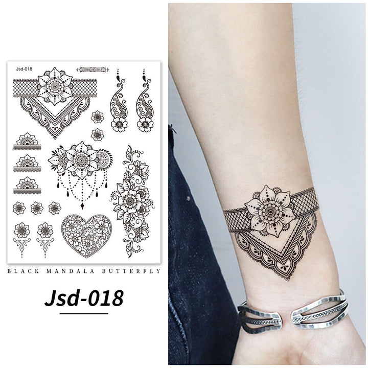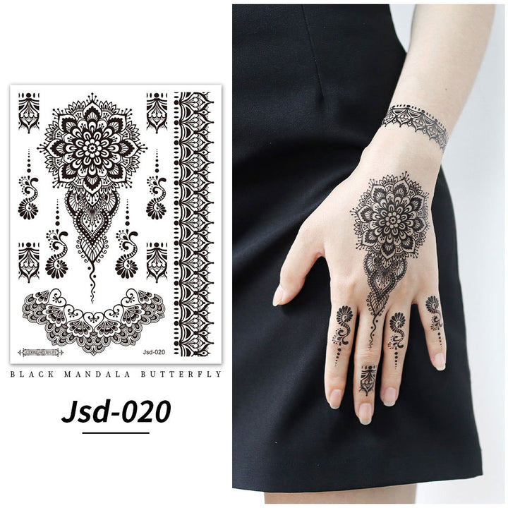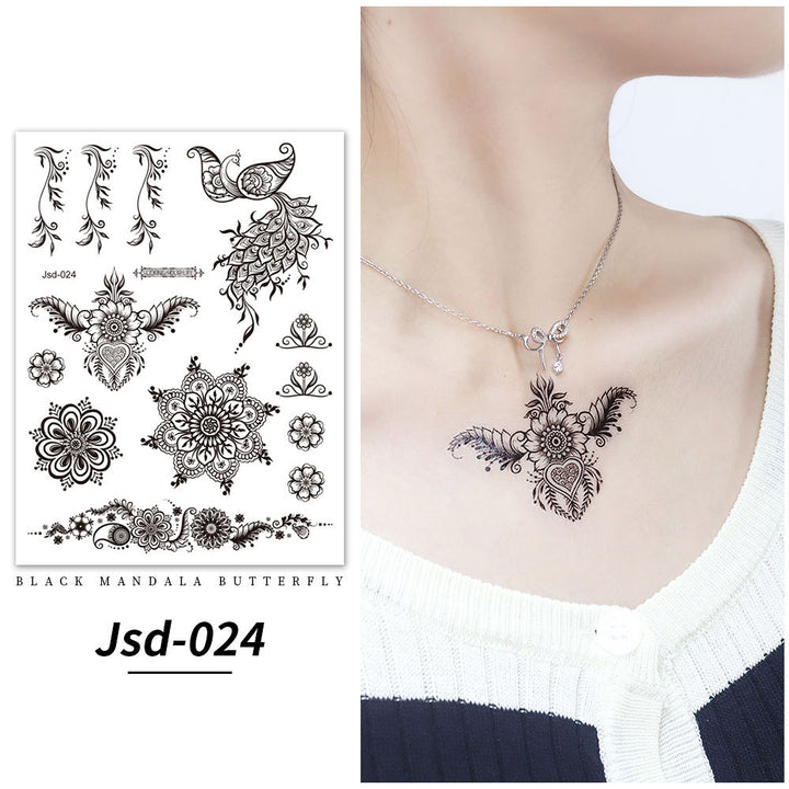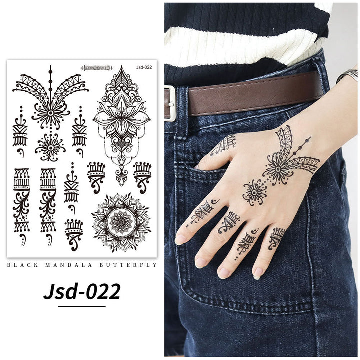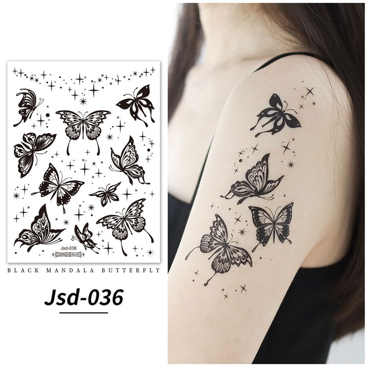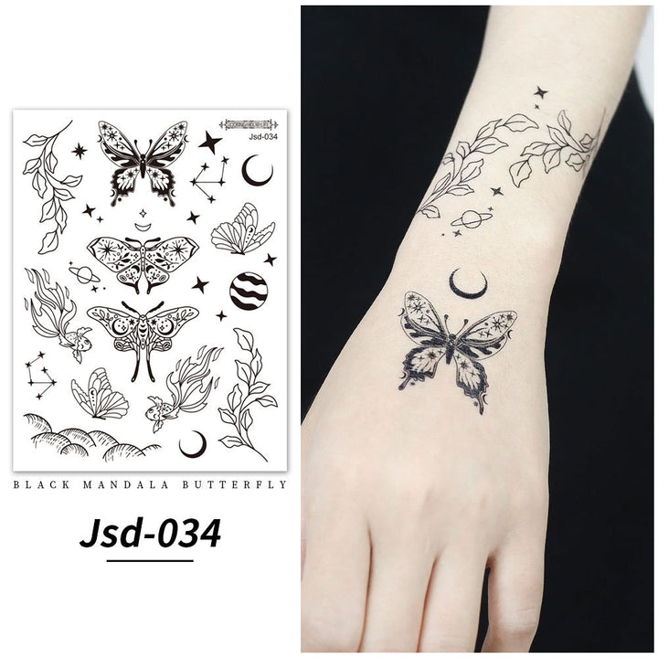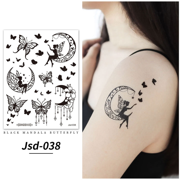 Step into the world of trendy body art with our Black Waterproof Tattoo Stickers Collection — a premium set of 20 unique designs that combine traditional mehndi and mandala art with modern minimal tattoos, butterfly and fairy themes, and more!