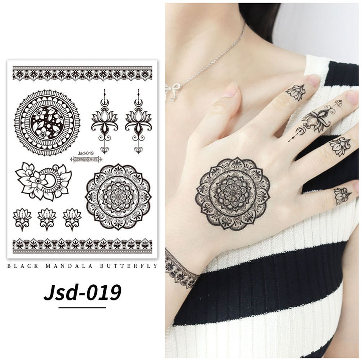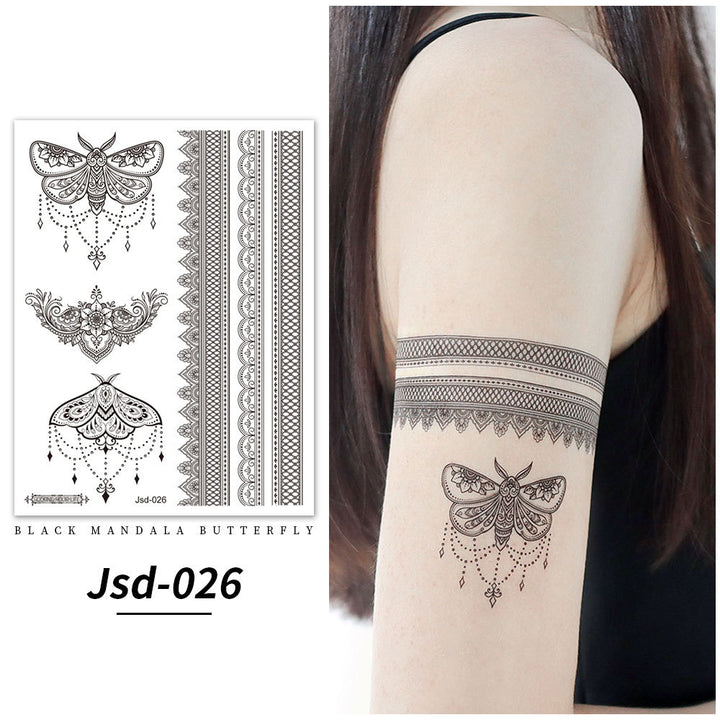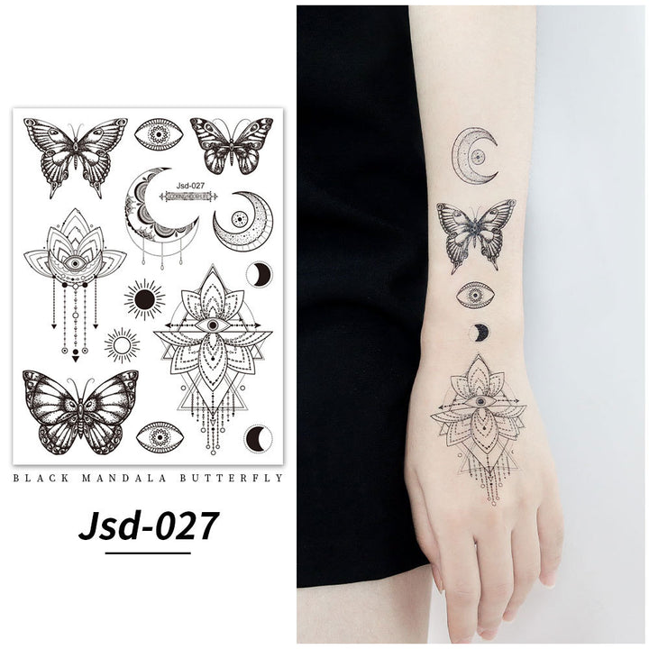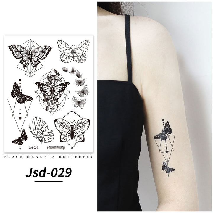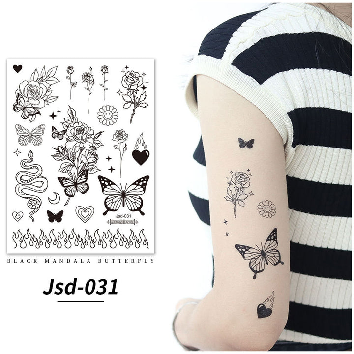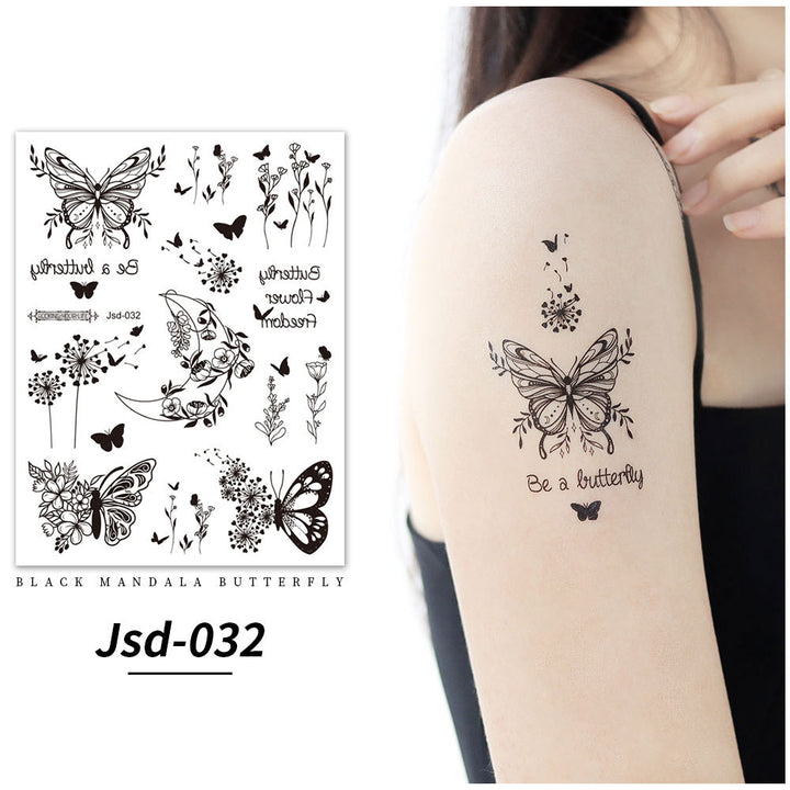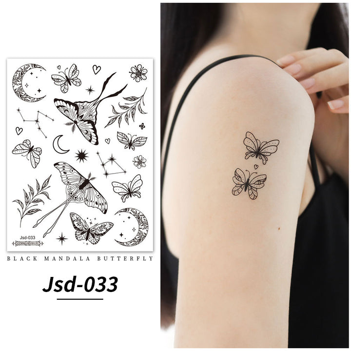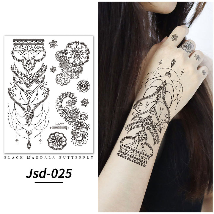 Step into the world of trendy body art with our Black Waterproof Tattoo Stickers Collection — a premium set of 20 unique designs that combine traditional mehndi and mandala art with modern minimal tattoos, butterfly and fairy themes, and more!