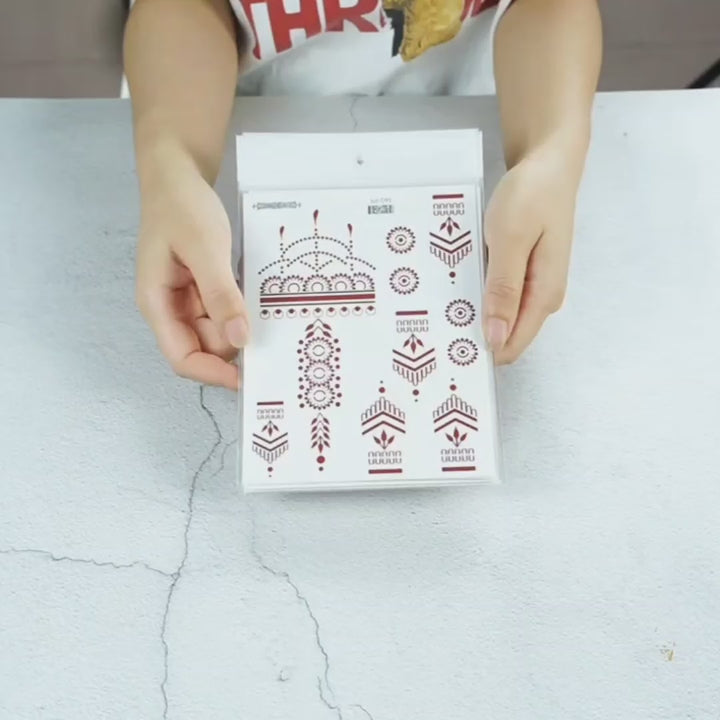 Elevate your festive look effortlessly with our Mehndi-Style Sticker Tattoos, a modern twist on traditional henna! Designed for weddings, Eids, and cultural celebrations - the freedom to select from 12 delicately crafted designs lets you plan and cover your mehndi requirements for the much of the season.