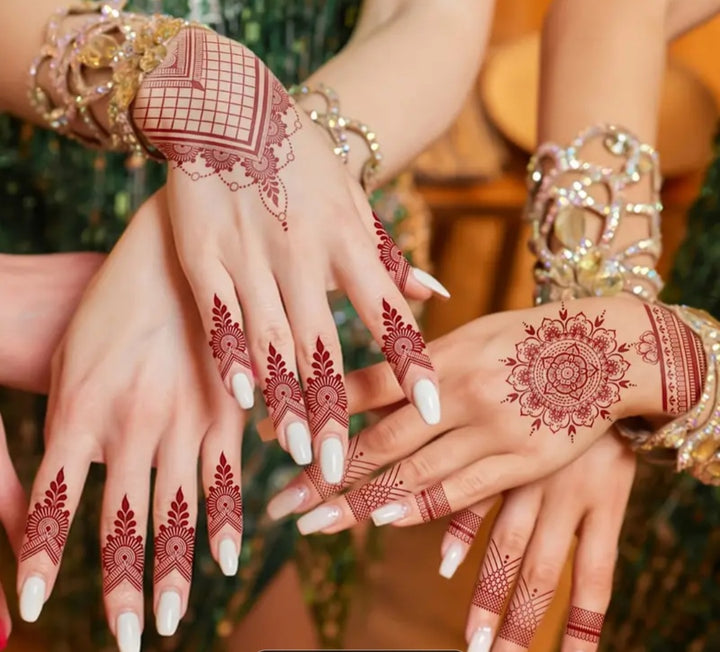 Perfect for bridesmaids, young girls, and anyone who loves festive glamour without the commitment of traditional henna. Get your favourite designs today, and add a charming, hassle-free Mehndi touch to your celebrations! 🎉💖