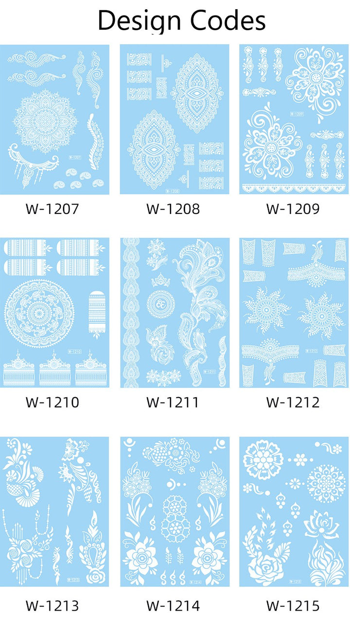 White Waterproof Mehndi Stickers – Select from 9 Elegant Henna Tattoo Designs