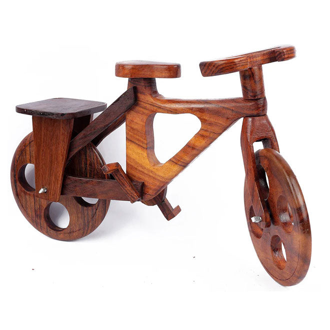 Elevate your home decor with our exquisite wooden toy bicycle, meticulously crafted from premium Indian Rosewood, a material renowned for its durability and rich, warm tones. This charming model not only serves as a delightful decorative piece but also embodies the timeless artistry of the Pakistan woodcraft industry, showcasing the skill and dedication of local artisans.